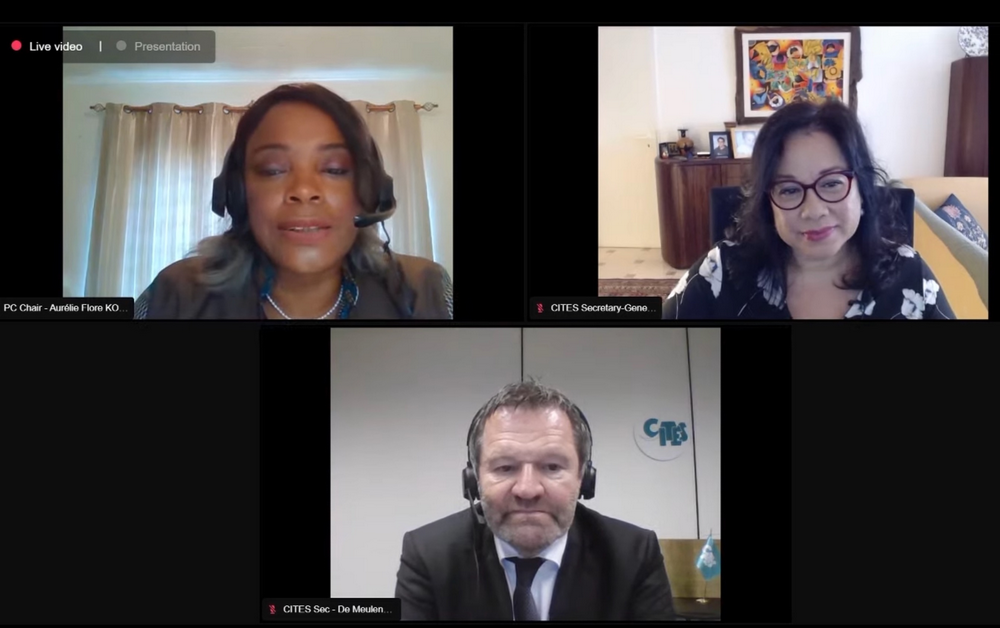 CITES植物委员会主席,非洲区代表奥雷莉·弗洛尔·孔巴·庞布Aurélie Flore Koumba Pambo(上左) 、秘书长伊沃妮·伊格罗Ivonne Higuero(上右)和秘书处科学技术主任Thomas De Meulenaer(下)
