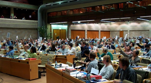 2000年吉格里(Gigiri)CITES第十一次缔约方大会期间,第一委员会(Committee I)的投票场景。图源:CITES秘书处