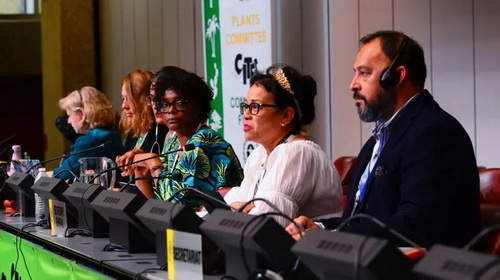 2023年,瑞士日内瓦,CITES秘书长伊沃妮·伊格罗 Ivonne Higuero(右二)在CITES植物委员会第26次会议上致辞。图源:CITES秘书处
