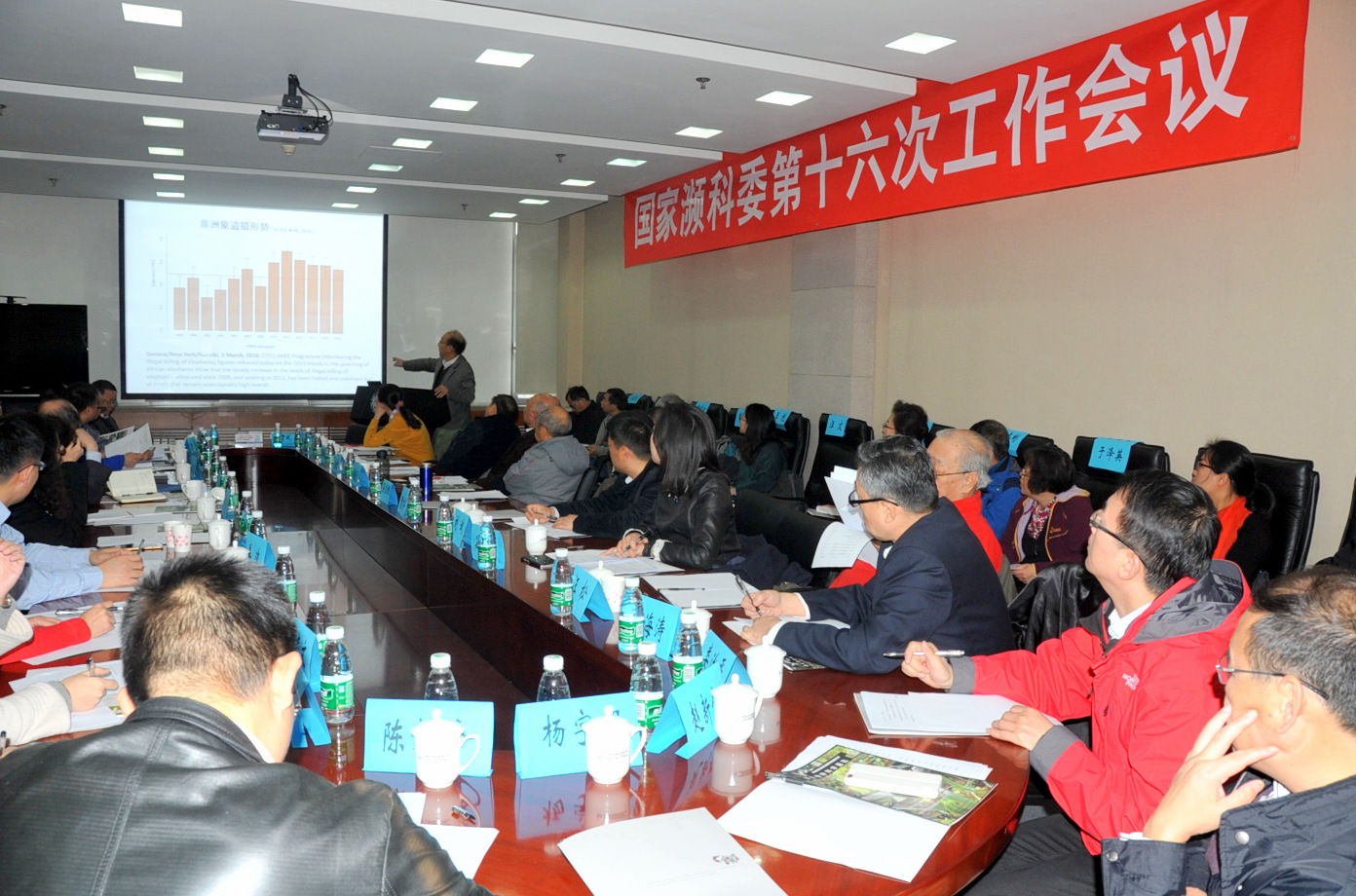 濒科委办公室主任孟智斌委员简要汇报了办公室2015年完成的主要事务性工作,包括濒危动植物种国际贸易科学咨询、主办了多次国际、国内履约工作会议、参加国家和地区性会议,就有关履约执法、物种咨询和保护研讨等开展培训、在有关主管部门的资助下,完成了鳄蜥、穿山甲、蝠鲼等CITES提案和贸易评估项目、完成各类物种鉴定等。华南濒危动物研究所胡慧建研究员做了“广东非法野生动物贸易现状与对策 ”特邀报告。通过分析各典型案例,他总结了当前广东地区非法野生动物贸易的变化和特点,提出了相关的建议和对策。云南省林业科学院杨宇明教授报告了“中国亚洲象拯救保护管理调研”,详细深入地介绍了中国境内亚洲象种群的现状、保护问题和保护建议。