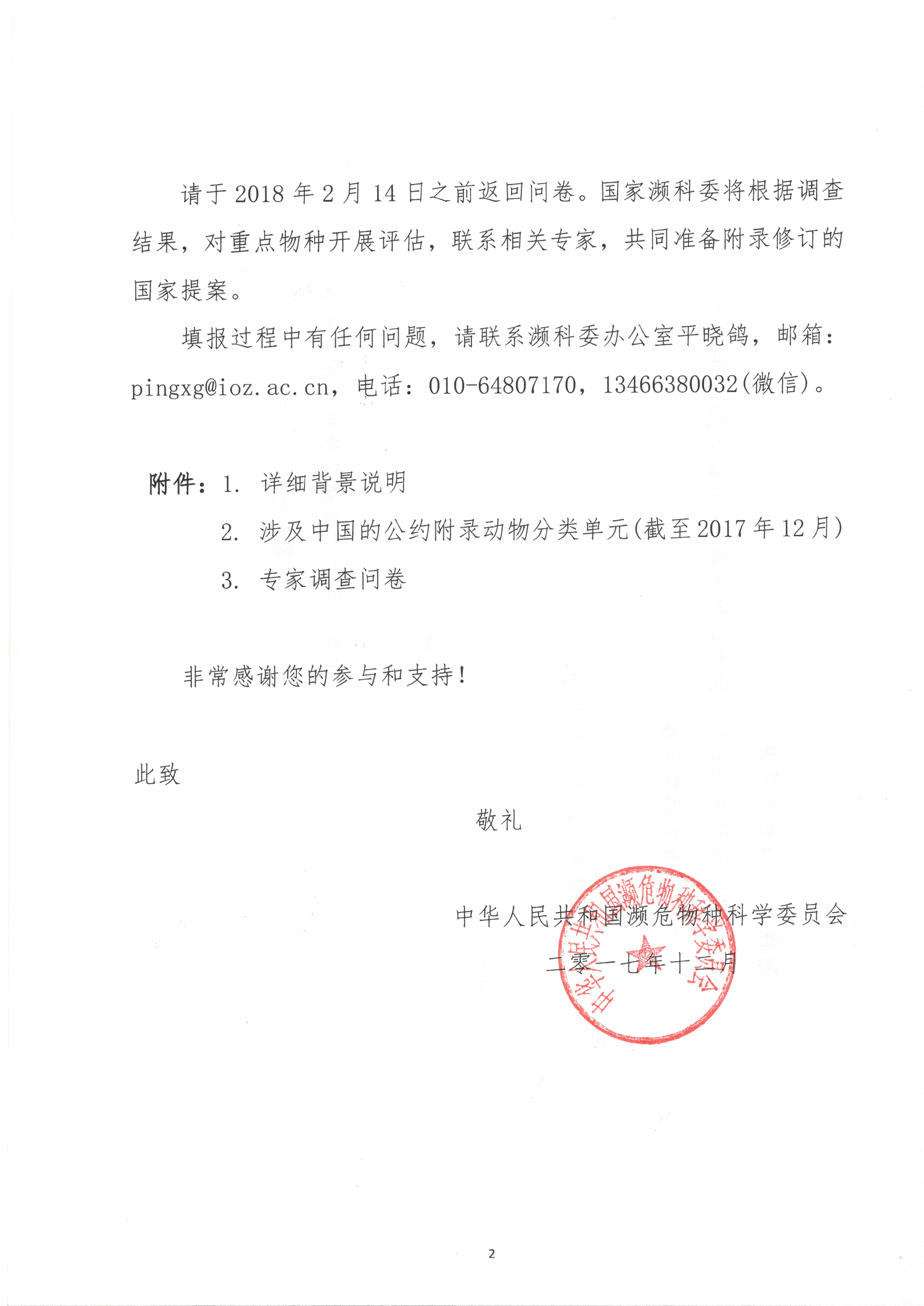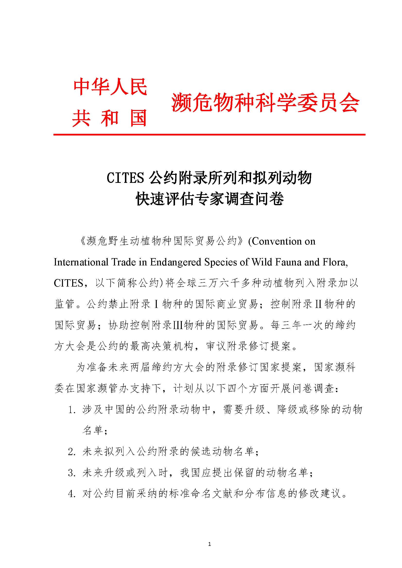 CITES公约附录所列和拟列动物快速评估专家问卷调查