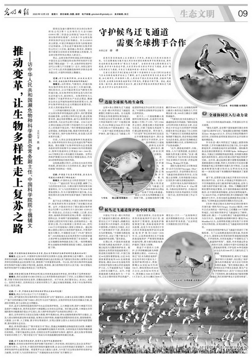魏辅文:中国的生态文明思想汲取了古代“天人合一”“道法自然”的生态智慧,阐释了人与自然的依存关系,与联合国可持续发展目标紧密相关,与“人与自然和谐共生”的2050年愿景高度契合,作为中国智慧和中国方案,为全球范围内的生物多样性保护提供了榜样和契机。