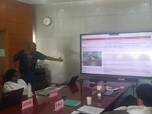会上,两位TESA项目1期访问学者分别汇报了各自的工作。Nobesuthu Adelaide Ngwenya女士的研究题目是“津巴布韦卡万戈–尚比西保护区人象互作导致的社会心理问题研究”,她着重研究了津巴布韦近年来由于大象数量显著增加而导致的大象活动与社区居民冲突不断加剧的社会问题,并从科学指导、动物保护,社区管理和居民生计等方面为CITES更好地发挥作用提出了相关建议。Jacob Mueti Ngwava博士的研究题目是“肯尼亚CITES公约附录Ⅰ物种鉴别手册”,在为期3个月的TESA项目中,他整合此前已有的文献与研究结果,编写新的肯尼亚CITES公约附录Ⅰ物种鉴别手册,目前已完成肯尼亚CITES附录Ⅰ龟鳖目6个物种的编写工作,填补了多项信息空白。