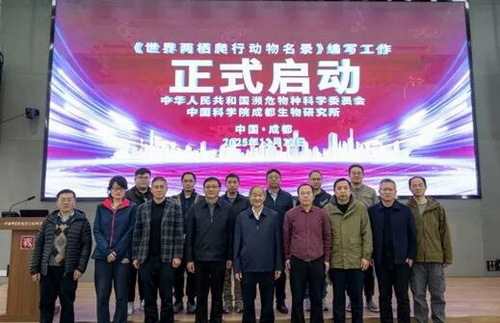 为了更好地服务国家履约工作,中华人民共和国濒危物种科学委员会(以下简称“国家濒科委”)委托中国科学院成都生物研究所(以下简称“成都生物所”)江建平研究员组织开展《世界两栖爬行动物物种名录》(以下简称“名录”)的编写。2025年12月12日,国家濒科委和成都生物所在成都举行了隆重的《名录》编写工作启动会。出席会议的有国家濒科委常务副主任魏辅文院士,成都生物所所长李家堂,生物多样性保护中心主任胡军华、副主任齐银及相关领域专家学者约100人。会上,李家堂所长首先代表研究所向魏辅文院士及各位专家的莅临指导表示诚挚感谢。他简要回顾了成都生物所在两栖爬行动物系统学研究领域的深厚历史积淀与学科优势,指出研究所扎实的科研基础为《名录》编写提供了有力支撑。他表示,研究所将全力做好各项服务保障工作,有信心、有决心协同各方力量,高标准完成这一光荣任务。