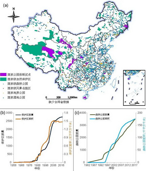 截至2018年底,我国已建立各类自然保护地1.18万处,包括自然保护区和其他类型的保护地,约占我国陆地国土面积的18%(图源:Huang et al., National Science Review, nwab042)