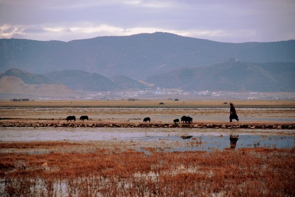 曾经在纳帕海湿地散养的猪